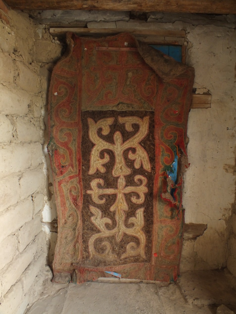 Trackbacks are closed, but you can post a comment. 552016114915 Embroidered door decoration in entrance to buanz on first evening of the bus journey