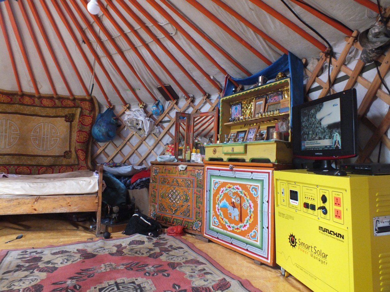 Trackbacks are closed, but you can post a comment. 552016105512 Shrine to Buddha next to the solar power box and the TV
