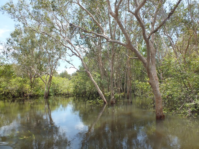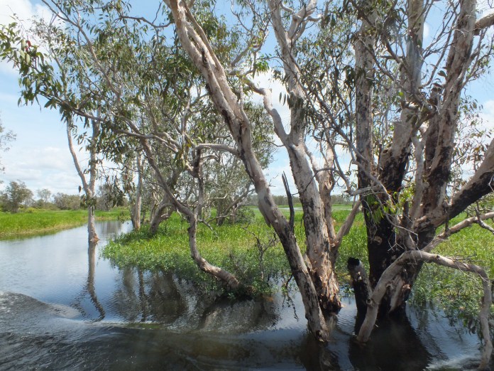 Since it’s the wet season it was harder to visit Kakadu, the massive national park in the top end of Australia. In fact, it was mostly underwater. I took a river cruise through parts that are dry land for the rest of the year. ‘Try to imagine my aunty standing underneath that tree fishing’, our guide said, pointing to a small bush – the few branches of the tree that still remained above water.