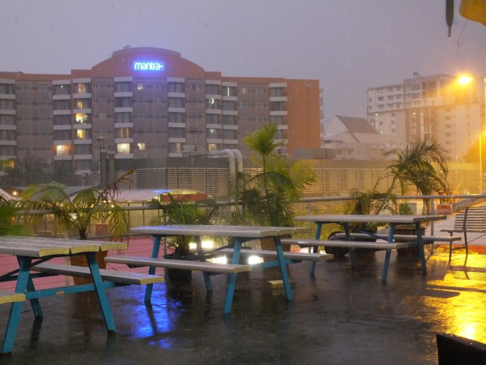 It was a good place to say my goodbyes. On my last night a howling wind woke me up, and then the rain hit. It pummelled the sundeck and sunshade, making the swimming pool churn and knocking the potted palms over. Lightening bolts flashed like strobe lightning (frequent enough for me to get the photo below) and the thunderclaps rolled on for ages, sounding like atomic bombs. I woke again at 2am to catch my airport bus, but ten minutes before I had to go I realised I’d left my passport in the library photocopier (in a stupid fit of attempted organisation). I ran to the police station, but no help there, so ran to the library and hammered on the door until a security guard opened up. They looked at me very suspiciously, but went to have a look and returned, passport in hand! I sprinted back through the debris of the storm, only now feeling the humidity of the night – and even caught my airport bus on time. And it was in that hot, sweaty panic and the calm silence after the storm that I bid farewell to Australia.