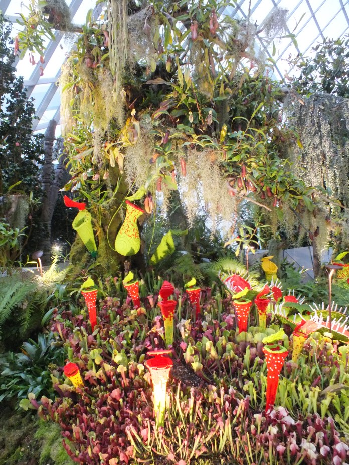 So, feeling in a mood for gardens, I went to the Cloud Forest at Gardens by the Bay, a botanical and climate change-themed amusement park. Inside a glass dome they have managed to create an artificial tropical mountain forest, complete with a 35m tall waterfall lit up in neon pink. Somehow a 200 year old forest has been established, recreating the beautiful, highly specialised natural environments that exist at different altitudes. Cloud forests are so highly adapted to their particular environments that they are especially vulnerable to climate change (rising sea levels, for example, pushes the cloud level higher) and are being destroyed at a higher rate than any other tropical forest. The dome was a very strange mixture of the real and the artificial: lego venus flytraps were dotted among real ones, carved wooden animals hid between the foliage and there wasn’t a single insect buzzing around. And that’s what Singapore felt like: exciting, often beautiful, and full of bizarre surprises and contradictions.